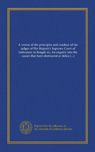 Book is to be different per grade. Book for children until finally adult are different content. As we know that book is very important for all of us. The book A review of the principles and conduct of the judges of His Majesty's Supreme Court of Judicature in Bengal: or, An enguiry into the causes that have ... by the legislature in establishing this court was making you to know about other information and of course you can take more information. It is very advantages for you. The e-book A review of the principles and conduct of the judges of His Majesty's Supreme Court of Judicature in Bengal: or, An enguiry into the causes that have ... by the legislature in establishing this court is not only giving you far more new information but also for being your friend when you experience bored. You can spend your spend time to read your guide. Try to make relationship using the book A review of the principles and conduct of the judges of His Majesty's Supreme Court of Judicature in Bengal: or, An enguiry into the causes that have ... by the legislature in establishing this court. You never sense lose out for everything in case you read some books.