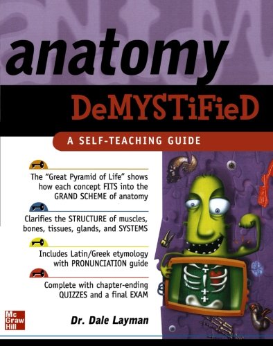 Say goodbye to dry presentations, grueling formulas, and abstract theories that would put Einstein to sleep -- now there's an easier way to master the disciplines you really need to know. McGraw-Hill's Demystified Series teaches complex subjects in a unique, easy-to-absorb manner, and is perfect for users without formal training or unlimited time. They're also the most time-efficient, interestingly written "brush-ups" you can find. Organized as self-teaching guides, they come complete with key points, background information, questions at the end of each chapter, and even final exams. You'll be able to learn more in less time, evaluate your areas of strength and weakness and reinforce your knowledge and confidence. This clear, heavily-illustrated guide to the human body covers anatomy of cells and tissues, muscle tissue, major muscles of the body, nervous tissue, membranes, organs, cancer, the skin, the human skeleton, the nervous system, glands, the senses, the cardiovascular system, the immune system, the respiratory system, digestion, genitourinary system, the embryo, and more.Anatomy Demystified by Dale Layman